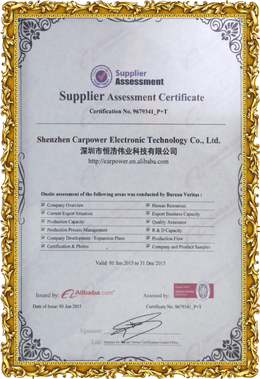 As for company quality management, Carpower has passed the ISO9001 International Quality System Certification. We are highly qualified & with all the necessary certifications, such as CE, ROHS, FCC, UN38.3, etc. Moreover,Carpower also approved by SGS.